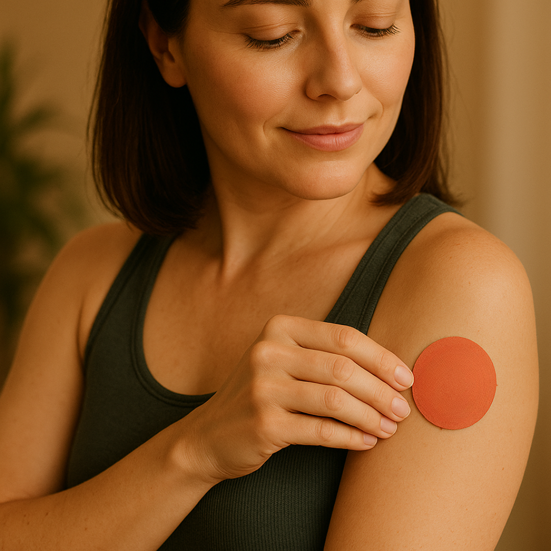Simplemente coloca un parche en una zona limpia y seca de tu piel, preferentemente en la parte inferior del abdomen o la parte superior del brazo. Es recomendable aplicarlos cada mañana para mantener una liberación constante de sus ingredientes activos.